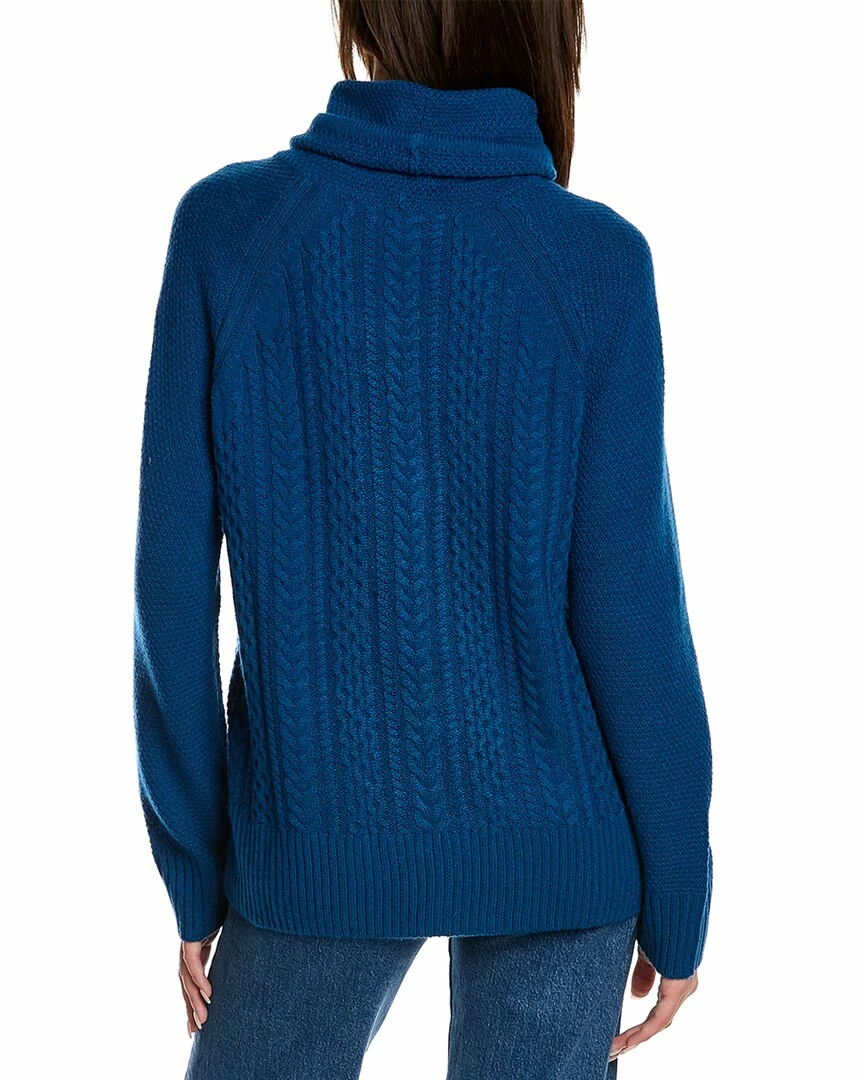- Berkshire Cable Wool & Cashmere-Blend Sweater In Coastal With Cable Knit, Drawstring Cowl Neck And Ribbed Trim