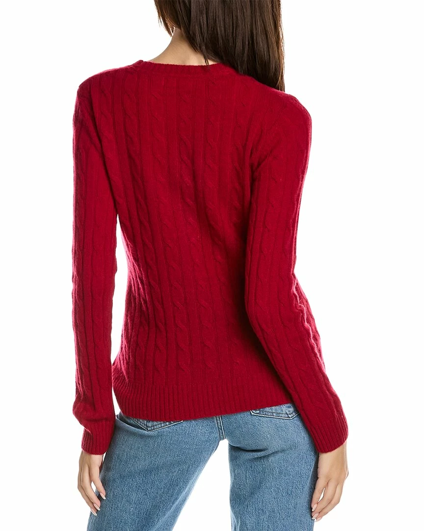 - Breezy Cable Cashmere Sweater In Red Velvet With Cable Knit, Crewneck And Ribbed Trim