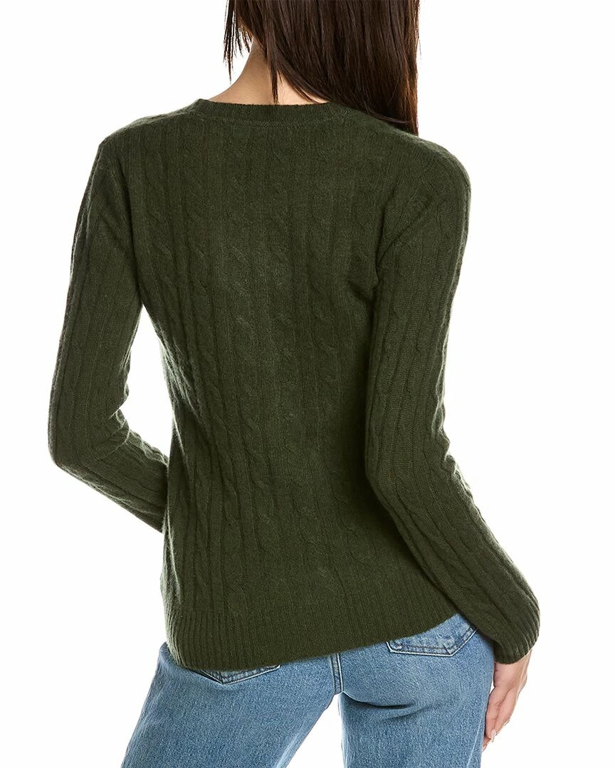 - Breezy Cable Cashmere Sweater In Army With Cable Knit, Crewneck And Ribbed Trim