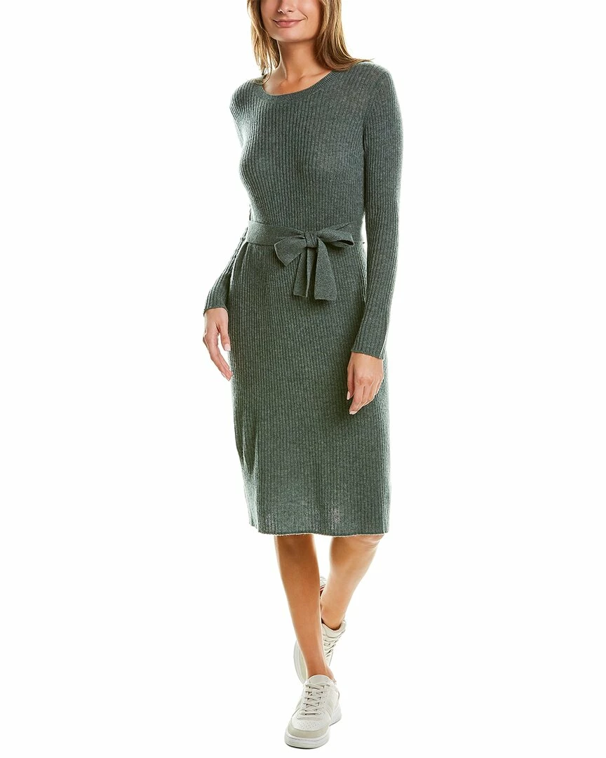 - Brushed Rib Wool & Cashmere-Blend Sweaterdress In Green With Tie-Sash At Waist