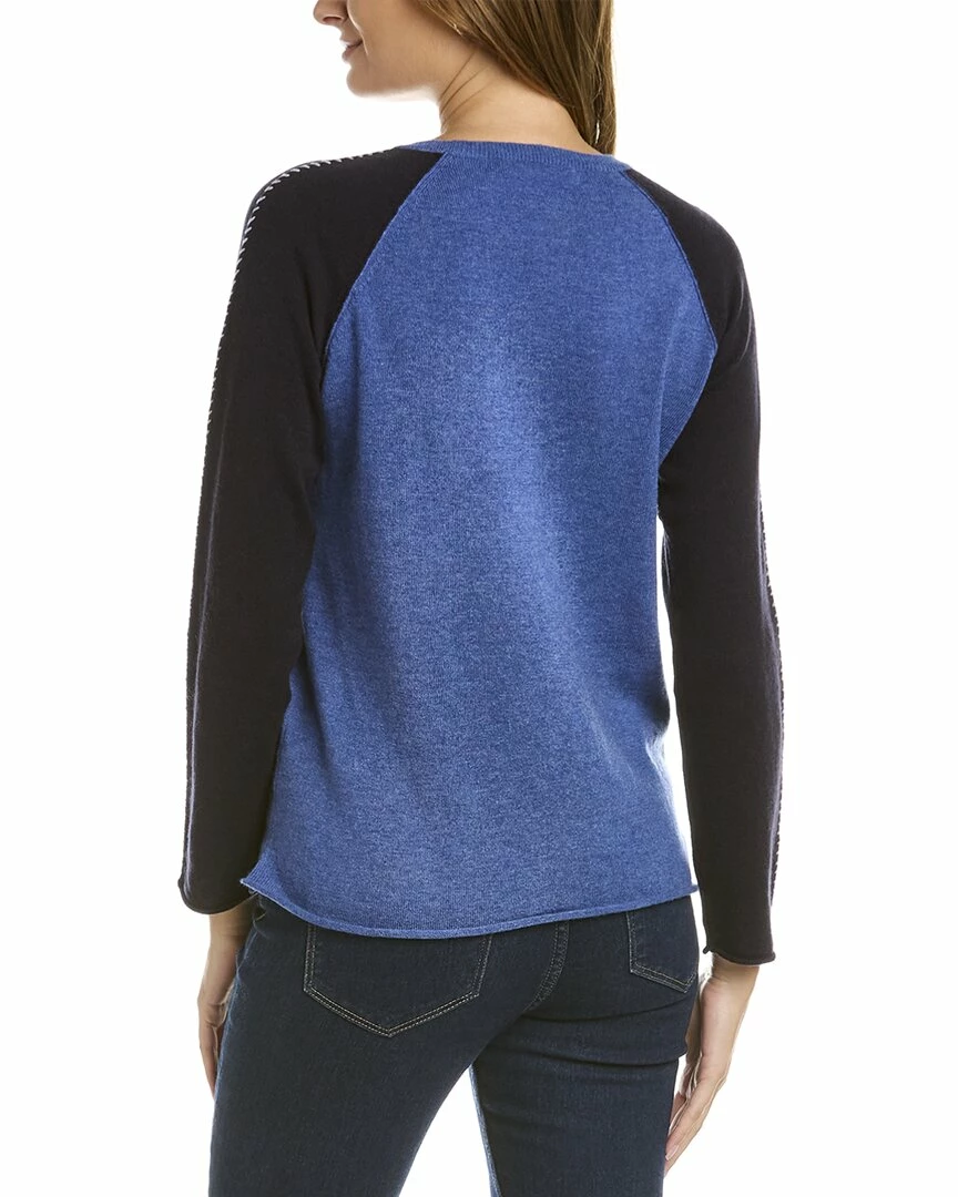 - Colorblock Wool & Cashmere-Blend Sweater In Blue And Black With Raglan Sleeves And Rolled Hem