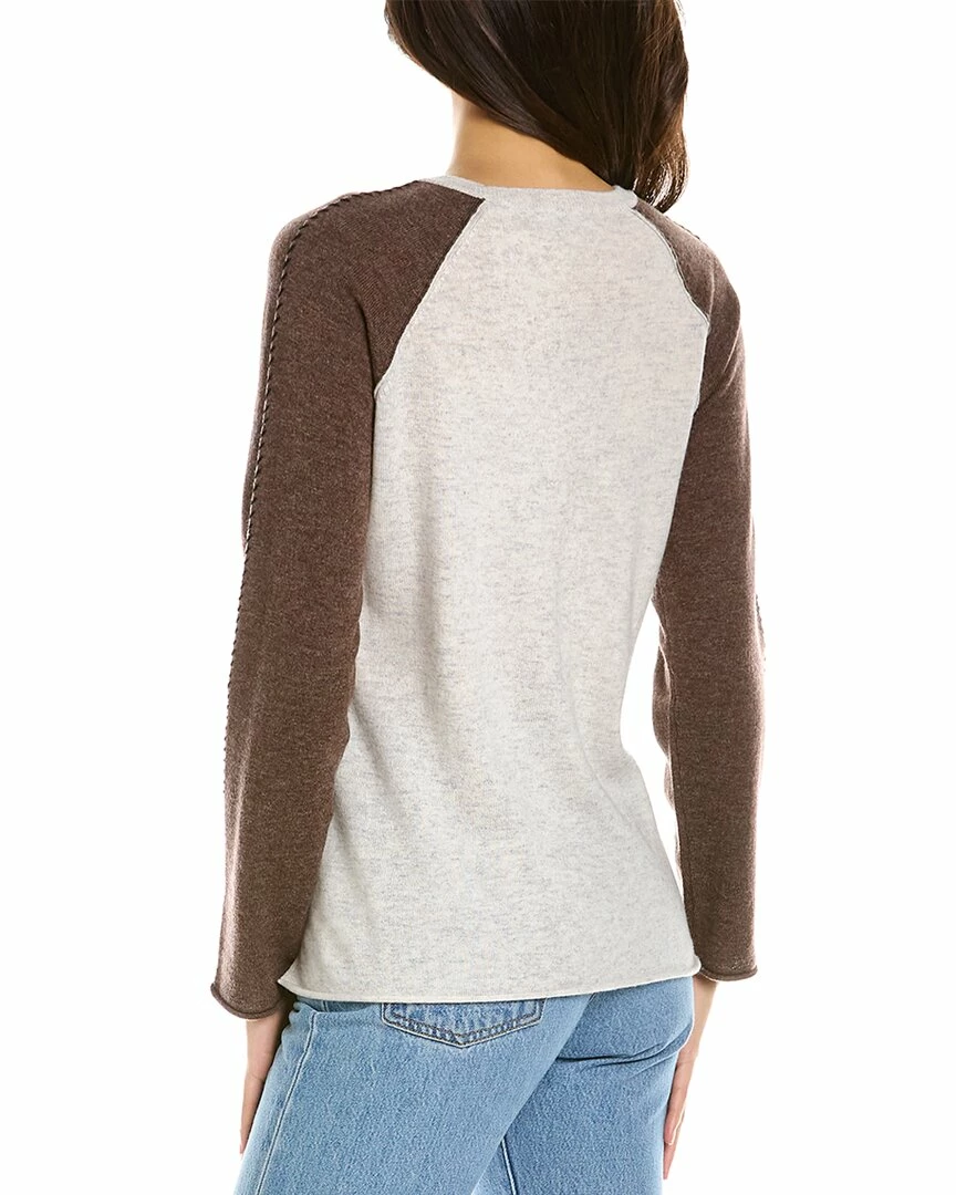 - Colorblocked Raglan Wool & Cashmere-Blend Sweater In Grey Neutral/Boar With Ribbed Crewneck, Raglan Sleeves, Whipstitch Detailing, Furled Trim And Side Slits At Hem