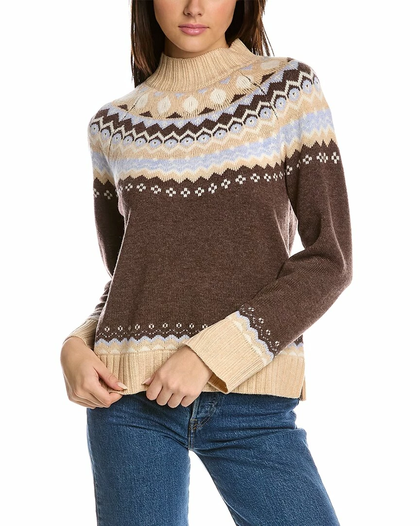 New π Hannah Rose Fairisle Raglan Turtleneck Wool & Cashmere-Blend Sweater for π© women β