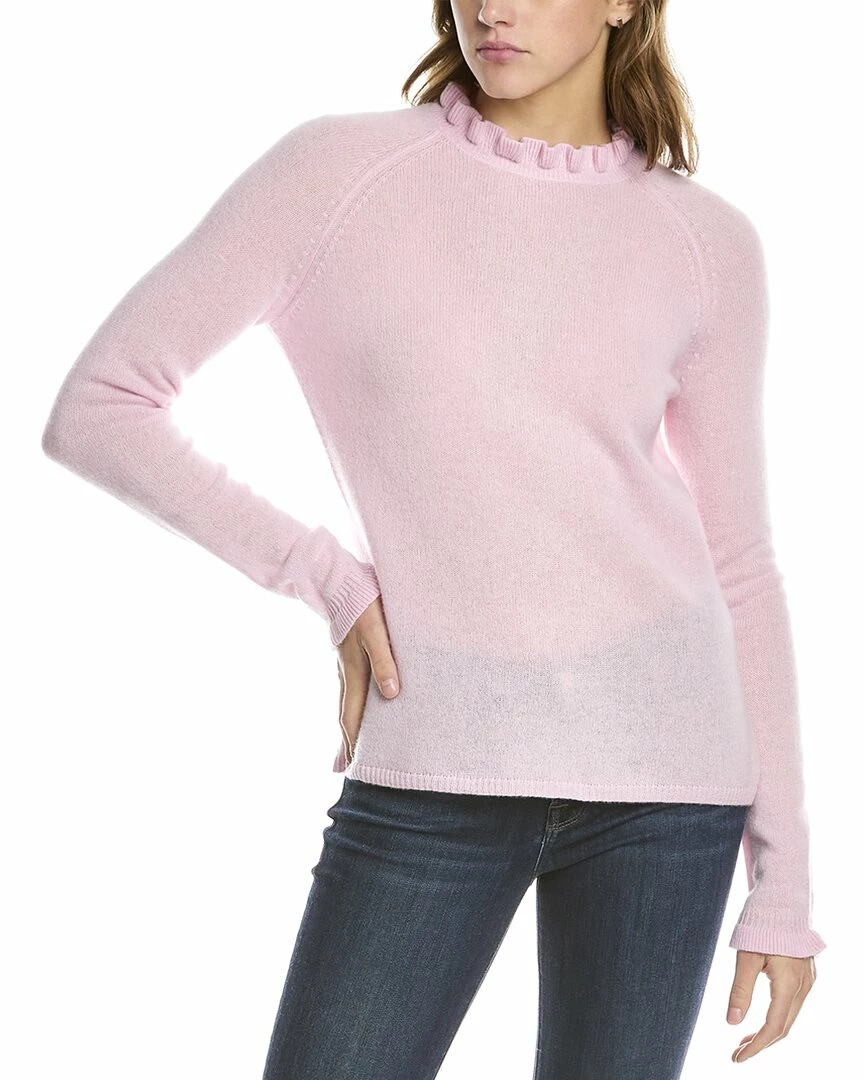 - Grace Cashmere Pullover In Pink With Ruffled Collar And Cuffs
