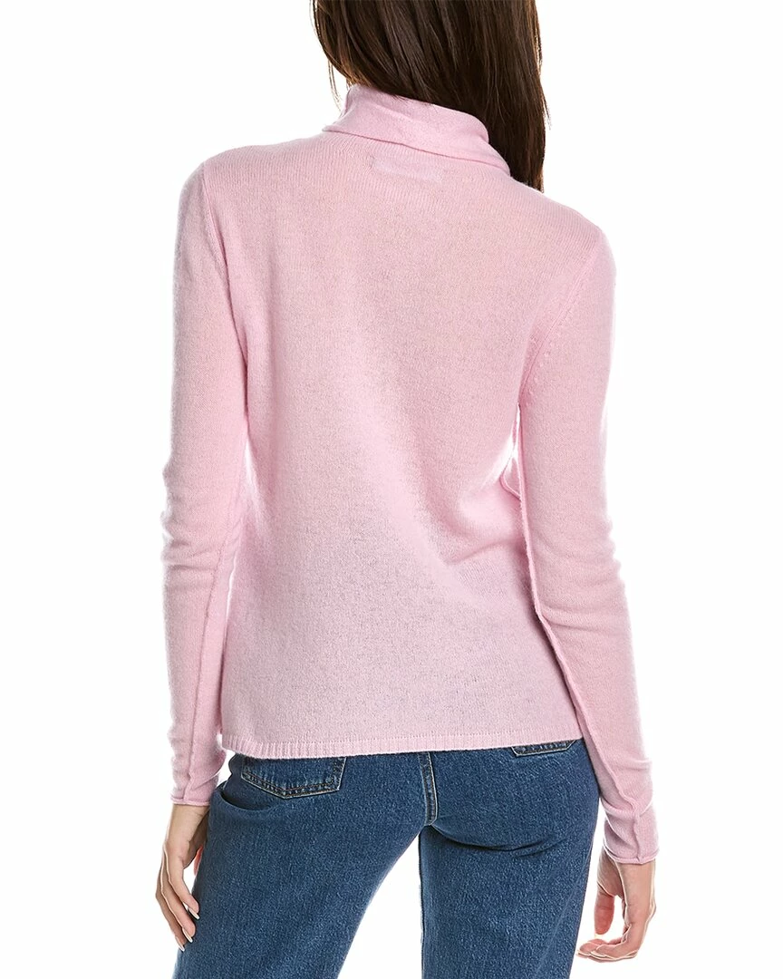 - Harper Lightweight Cashmere Sweater In Beach Pink With Funnel Neck, Exposed Seams And Ribbed Trim