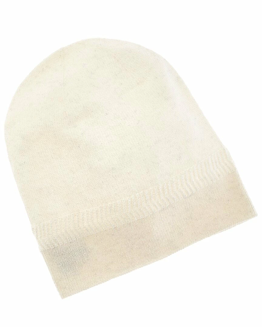 - Herringbone Trim Slouchy Cashmere Hat In White With Herringbone Trim