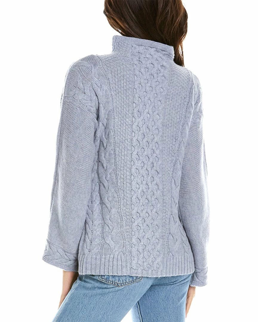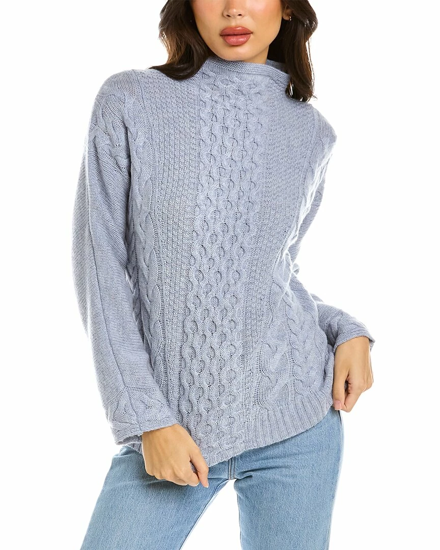 - Nell Cable Wool & Cashmere-Blend Sweater In Blue With Mock Neck And Dropped-Shoulder Sleeves