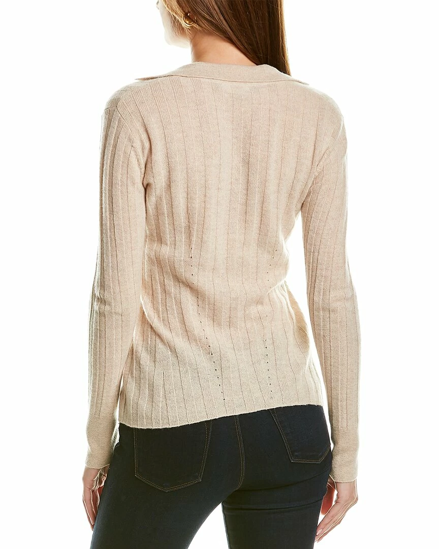 - Ribbed Cashmere Sweater In Tan With Polo Collar And Button Cuffs
