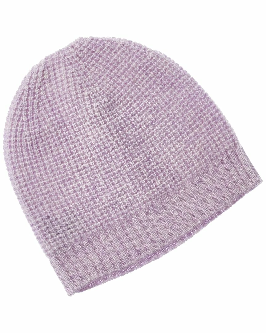- Waffle Stitch Cashmere Hat In Purple With Ribbed Trim