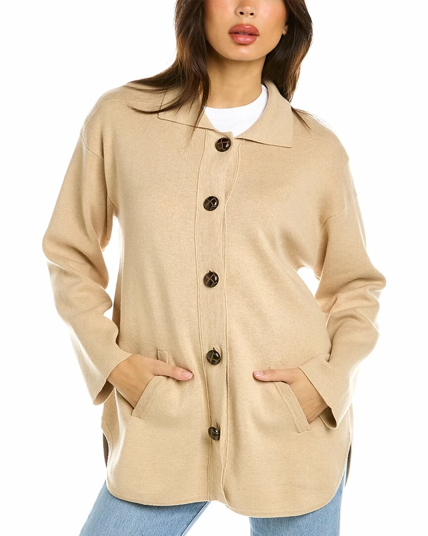 - Willow Cashmere-Blend Shacket In Cream With Spread Collar, Dropped-Shoulder Sleeves, And Dual Front Pocket